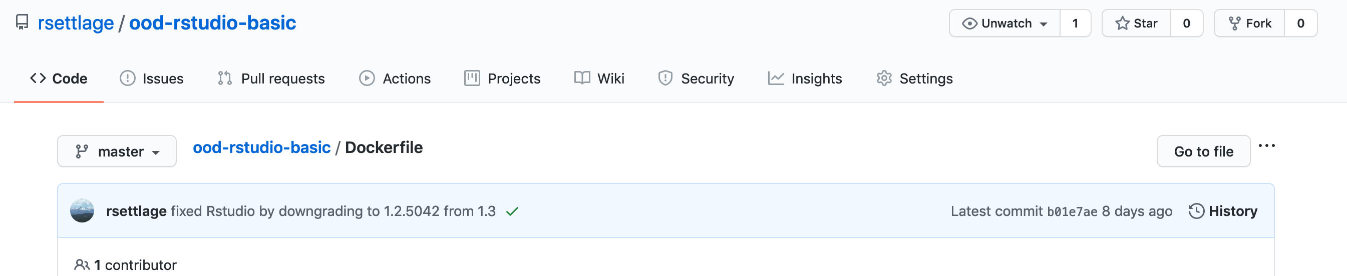 If you are creating your own containers and pushing to DockerHub, I have found this to work, assuming you are in the directory containing the Dockerfile and the image name will be ood-rstudio-stat3615 version 3.6.1: